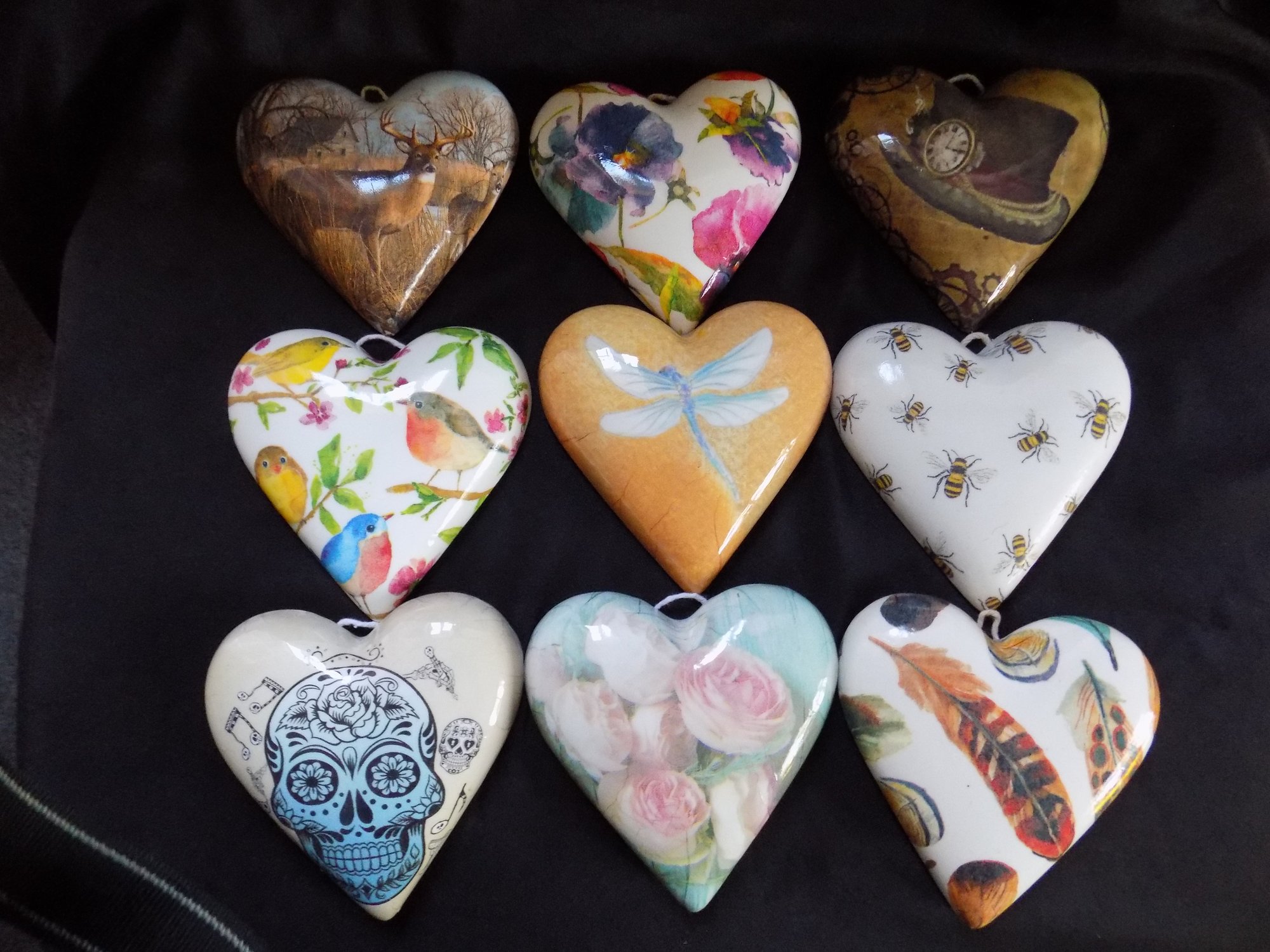 Add a touch of heartfelt charm to your space with our handmade decoupage hearts.